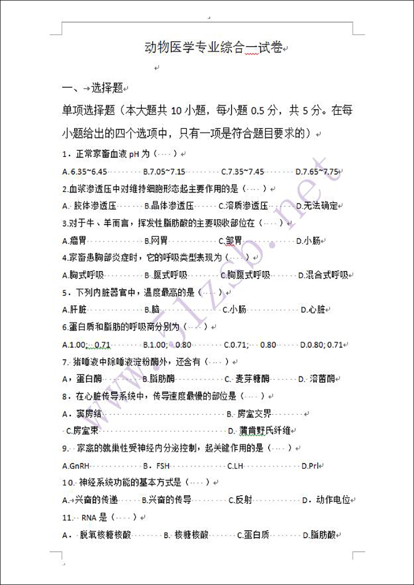 動(dòng)物醫(yī)學(xué)/動(dòng)物科學(xué)專(zhuān)業(yè)典型題分類(lèi)集訓(xùn)