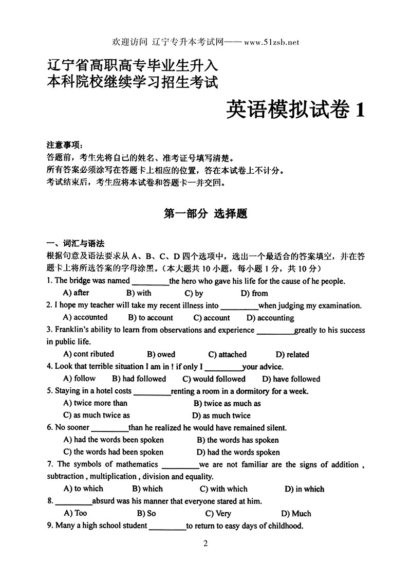 溫馨提示:本站提供專升本公共課書籍,依據(jù)遼寧專升本公共課考試內(nèi)容編寫,可供準(zhǔn)備專升本的你參考使用。