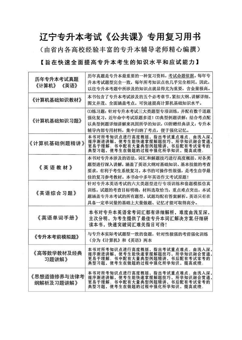 溫馨提示:本站提供專升本公共課書籍,依據(jù)遼寧專升本公共課考試內(nèi)容編寫,可供準備專升本的你參考使用。