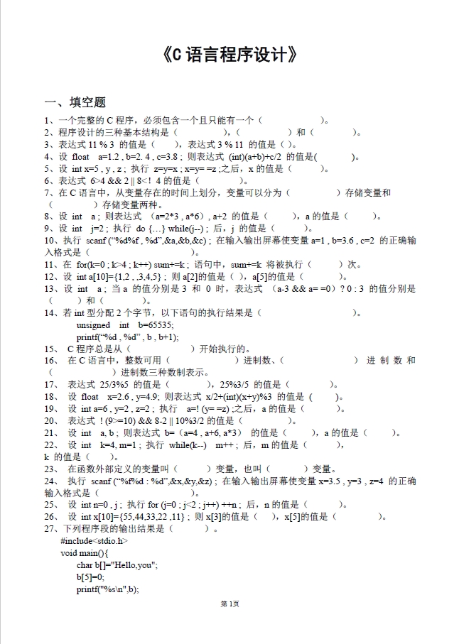 C語(yǔ)言程序設(shè)計(jì)習(xí)題