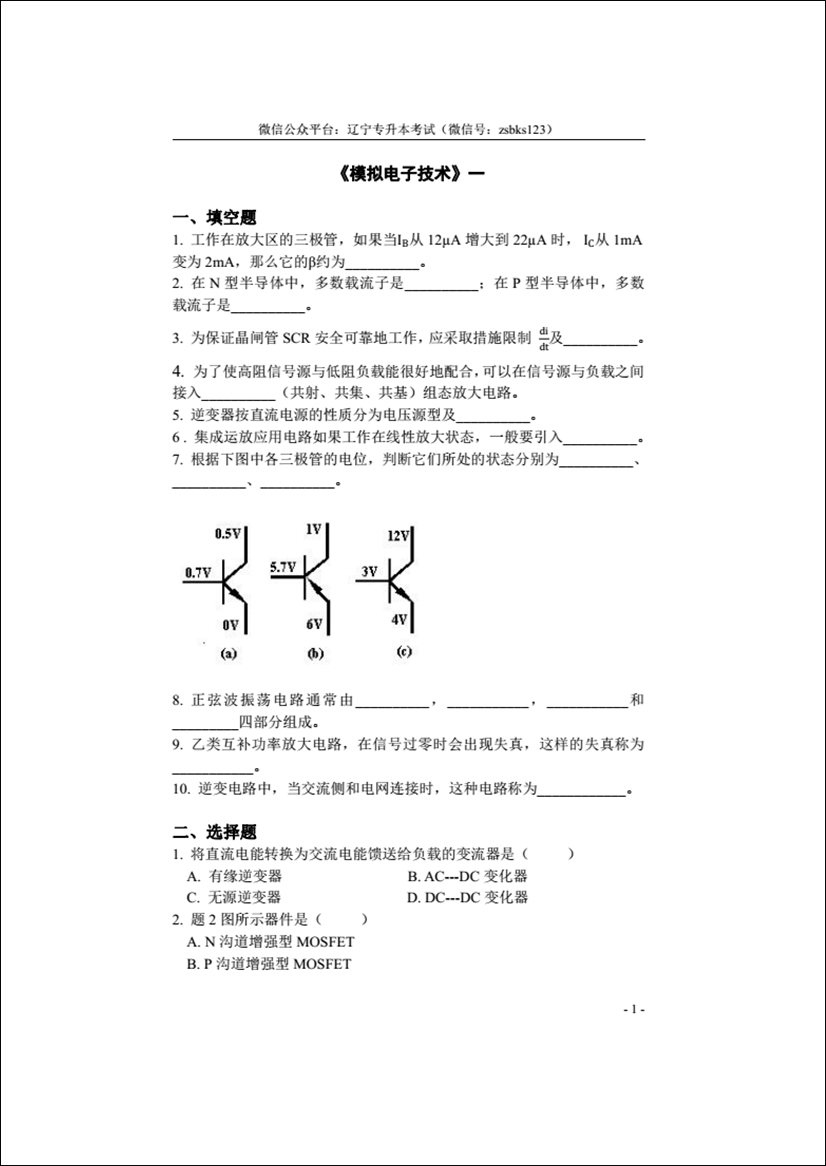 自動(dòng)化類-模擬電子技術(shù)習(xí)題