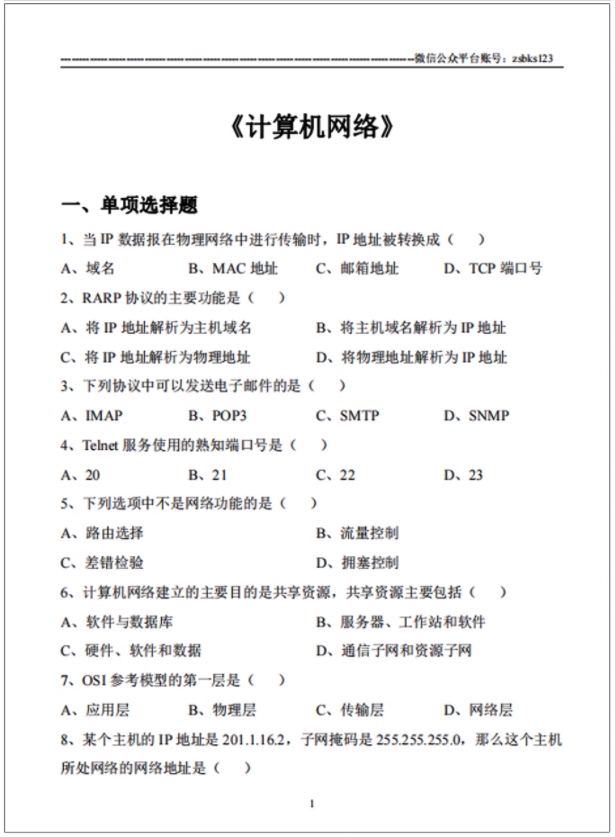 計(jì)算機(jī)網(wǎng)絡(luò)綜合習(xí)題