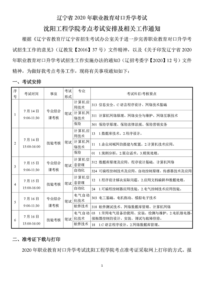 沈陽工程學(xué)院專升本專業(yè)課考試時(shí)間及相關(guān)考試安排