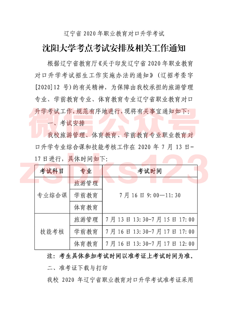 2020年遼寧專升本考試沈陽大學(xué)學(xué)前教育/旅游管理/體育教育考試安排