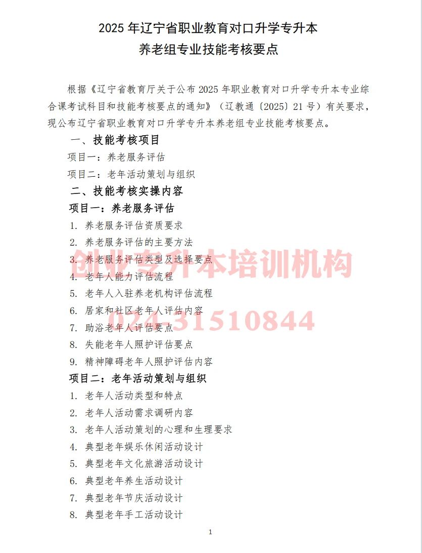 2025年遼寧專升本“養(yǎng)老組”專業(yè)技能考核要點公告